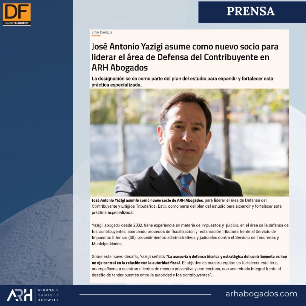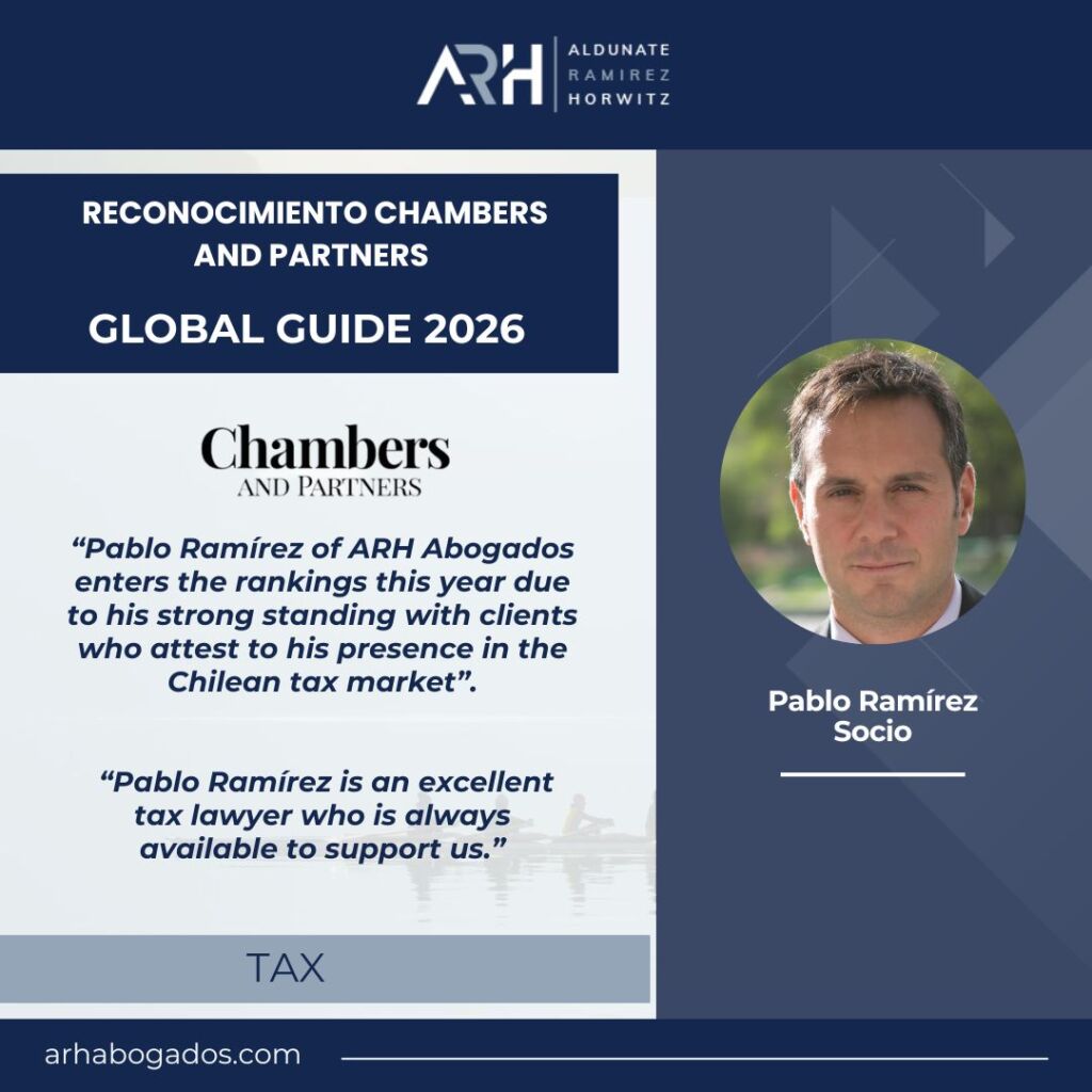 Felicitamos a nuestro socio Pablo Ramirez por su incorporación en Chambers and Partners, Global Guide 2026, en la categoría TAX.Este reconocimiento destaca su sólida trayectoria en el mercado tributario chileno, junto con la confianza y valoración de sus clientes.